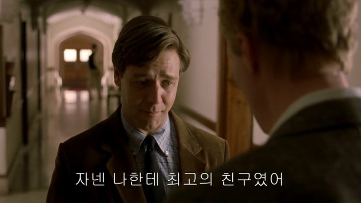 뷰티풀 마인드(A Beautiful Mind2001) 론 하워드 러셀 크로우, 에드 해리스, 제니퍼 코넬리, 폴 베서니, 애덤 골드버그, 주드 허쉬, 조시 루카스, 앤서니 랩, 크리스토퍼 플러머 드라마 40년대 최고 엘리트들이 모이는 프린스턴 대학원.시험도 보지 않고 장학생으로 입학한 웨스트버지니아 출신의 한 천재가 캠퍼스를 들썩이게 한다.너무나 내성적이고 무뚝뚝해 보이고 오만하다는 말을 들을 정도로 자신의 확신에 찬 수학과 신입생 ‘존 내쉬’. 아무도 따라갈 수 없는 뛰어난 두뇌와 수려한 외모를 지녔지만 괴짜 천재인 그는 기숙사 유리창을 노트 삼아 단 하나의 문제에 매달린다.220323 천재의 삶에서 수학보다 위대한 사랑을 발견한다.인물의 뛰어난 업적과 그 삶을 갖게 한, 숫자로는 절대 풀 수 없는 사랑이 깊은 여운을 남긴다.감동적인 드라마에 좋은 연기까지 더해져 아름다운 영화를 완성했다.