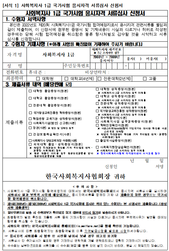 사회복지사 1급 자격시험 합격예정자 응시자격 증빙서류 제출완료!