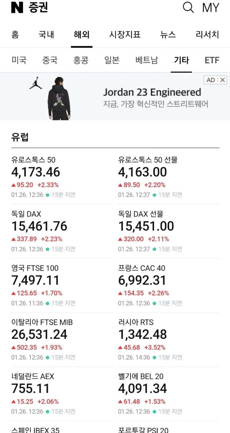 중국 상하이와 홍콩의 한센지수 상승 영국 독일 프랑스 등 유럽의 강한 상승세.
