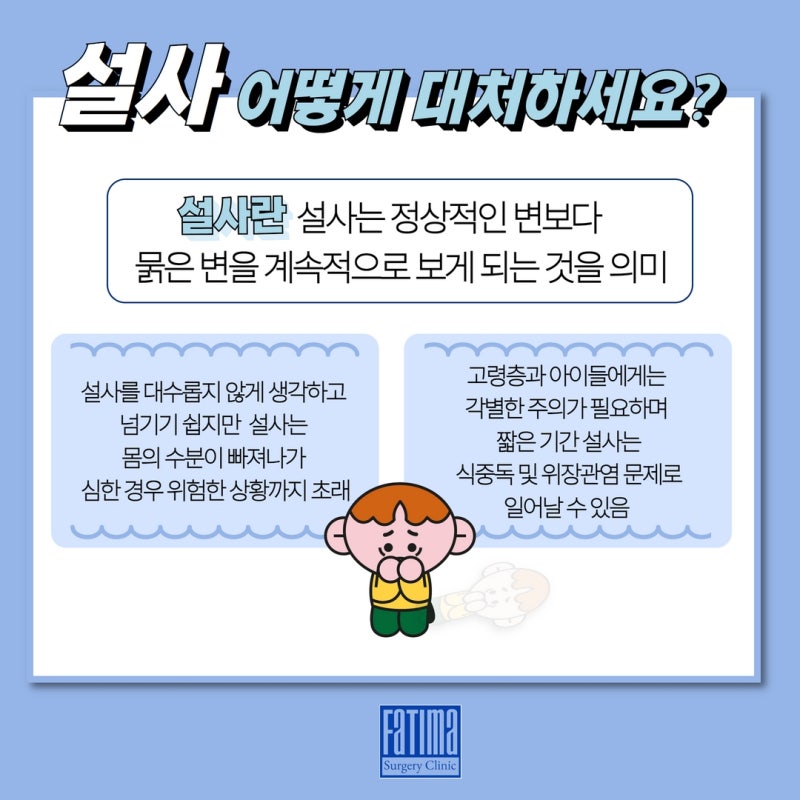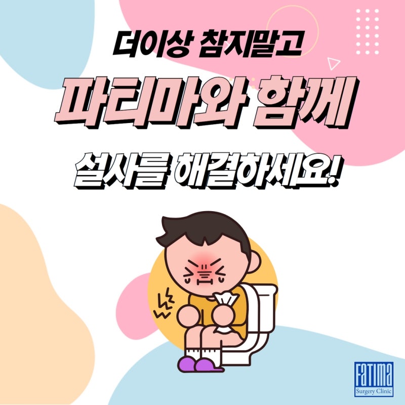 배탈이 나거나 설사로 인해 무조건 굶는 방법을 택했다면 그건 잘못된 방법이에요.일방적으로 이루어지는 단식은 호전에 도움이 되지 않습니다. 함부로 굶는 행위로 위산으로 인해 위에 부담을 줄 수 있어 올바른 치료 방법이 될 수 없습니다. 특히 내원하여 진료받을 수 있는 시간이 없고 설사를 가볍게 생각하여 무작정 굶는 분들의 경우 금식할 생각은 없는 것이 좋습니다. 굶으면 안 되는 이유는?일방적으로 이루어지는 단식은 호전에 도움이 되지 않습니다. 함부로 굶는 행위로 위산으로 인해 위에 부담을 줄 수 있어 올바른 치료 방법이 될 수 없습니다. 특히 내원하여 진료받을 수 있는 시간이 없고 설사를 가볍게 생각하여 무작정 굶는 분들의 경우 금식할 생각은 없는 것이 좋습니다. 굶으면 안 되는 이유는?성남 서현항외과 지사제!설사가 계속되면 많은 분들이 소화기관의 회복이 필요하다고 생각합니다. 음식에는 설사에 도움이 되는 다양한 영양소가 있습니다. 위장관의 일부 점막이 손상되더라도 영양물의 흡수와 처리가 충분히 되기 때문에 음식을 먹는 것이 더 도움이 된다고 할 수 있습니다. 또 단식은 소화기관 점막이 위축되고 효소 분비가 줄어 소화에 악영향을 미칩니다. 잦은 질환의 원인은?잦은 설사의 원인은 무엇일까.질환의 원인은 너무 많아서 하나로 꼽을 수 없기 때문에 질환의 다양한 원인에 대해서 알아보겠습니다.성남 서현항외과 지사제! 설사의 원인1) 과민성대장증후군2) 자극적인 음식을 자주 섭취3) 과도한 음주4) 호르몬 변화 설사를 멈추는 방법!일반적으로 변은 잠시 참을 수 있지만 설사의 경우 장에서 나오는 속도가 매우 빠르기 때문에 일반 변보다 견디기 어렵습니다. 만약 중요한 자리를 앞두고 설사가 나올 것 같으면 곤란할 것입니다. 또한 질환이 만성화되어 지속적으로 나타날 경우 탈수 증상으로 인해 건강에도 큰 문제가 발생할 수 있습니다. 우리와 함께 설사를 멈추는 방법에는 어떤 방법이 있는지 함께 아래를 살펴보도록 하겠습니다.성남 서현항외과 지사제!1) 수분 섭취 설사는 변이 수분과 함께 배출되는 것이므로 질환이 지속되면 탈수 증상이 나타납니다. 따라서 부족한 수분을 신중하게 공급하고 수분을 보충하여 설사를 유발하는 유해균을 배출시키는 데 도움이 됩니다. 한 번에 대량을 배출하는 것보다는 적은 양을 자주 마시는 것이 좋은데요. 전해질이 풍부하게 함유된 이온음료로 수분 보충도 도움이 됩니다. 2) 약을 먹는 설사에 좋은 약에는 설사약이나 위장 운동 억제제가 있습니다. 지사제는 장 속 수분을 흡수하여 대변을 건조시키므로 설사를 멈추게 합니다. 위장운동 억제제는 대장이나 결장의 움직임을 느리게 하고 대변이 나오기까지 시간이 길어지면서 그동안 충분히 수분을 흡수해 고체 형태의 대변을 만드는 데 도움이 됩니다.성남 서현항외과 지사제! 배 마사지3) 배 마사지 배가 차가우면 장이나 위가 경련을 일으켜 설사를 할 수 있기 때문에 배를 따뜻하게 하는 마사지도 도움이 됩니다. 따뜻한 찜질팩을 복부 위에 올려놓고 손으로 원을 그리면서 부드럽게 마사지합니다.성남 서현항외과 지사제!오늘은 설사를 멈출 수 있는 여러 가지 방법에 대해서 알아봤는데요. 설사로 더 이상 고통받지 않도록 성남서현항외과 파티마외과에서 도와드리겠습니다. 감사합니다。오늘은 설사를 멈출 수 있는 여러 가지 방법에 대해서 알아봤는데요. 설사로 더 이상 고통받지 않도록 성남서현항외과 파티마외과에서 도와드리겠습니다. 감사합니다。오늘은 설사를 멈출 수 있는 여러 가지 방법에 대해서 알아봤는데요. 설사로 더 이상 고통받지 않도록 성남서현항외과 파티마외과에서 도와드리겠습니다. 감사합니다。관련 블로그성남 위례항문외과 변비 악화 음식은? 파티마외과 성남 위례항문외과 변비 악화 음식은? 안녕하세요 성남 위례항문외과 파티마외과의원입니다.blog.naver.com성남 위례항문외과 변비 악화 음식은? 파티마외과 성남 위례항문외과 변비 악화 음식은? 안녕하세요 성남 위례항문외과 파티마외과의원입니다.blog.naver.com성남 위례항문외과 변비 악화 음식은? 파티마외과 성남 위례항문외과 변비 악화 음식은? 안녕하세요 성남 위례항문외과 파티마외과의원입니다.blog.naver.com
