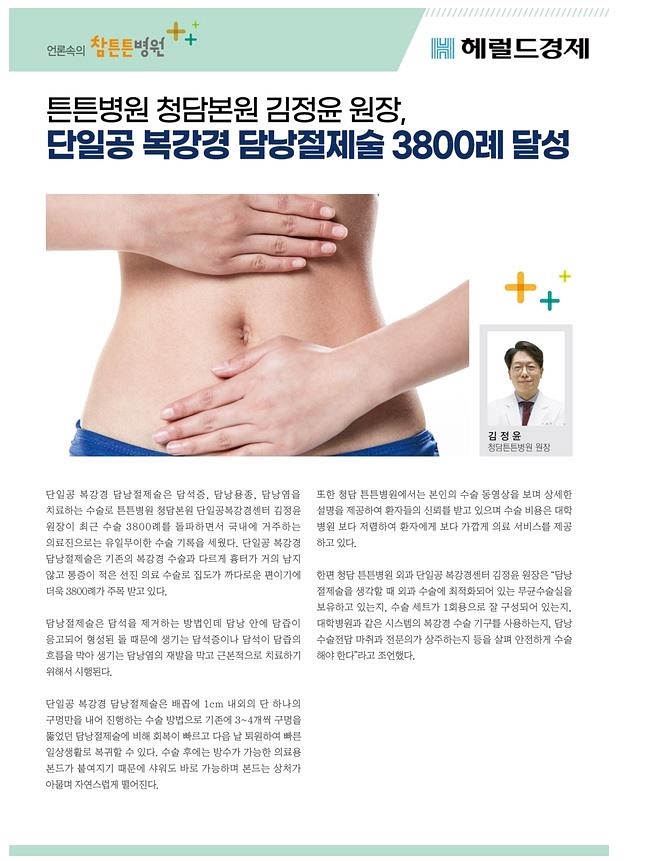 담낭 절제술과 같은 경우 복강경 담낭 절제술이 일반화되고 있으며, 최근에는 배꼽 주변을 통해 하나의 절개창을 이용한 솔루션이 가능하게 되었습니다.