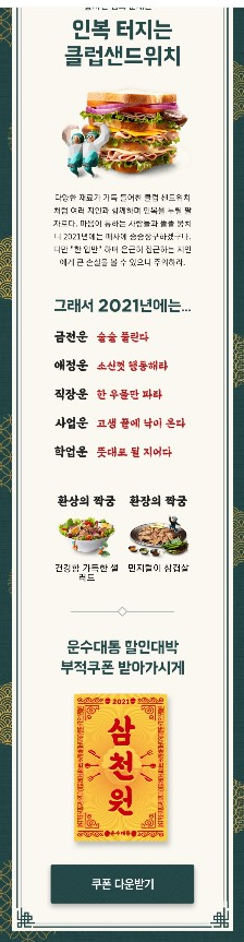 남자친구는 낯익은 클럽 샌드위치, 저는 성장하는 삶은 달걀이 나왔는데.2021년 올해의 재물운은 남자친구나 저도 좋은 느낌이라 은근히 기쁩니다. ㅋㅋㅋㅋㅋㅋㅋㅋㅋㅋㅋㅋㅋㅋㅋㅋㅋㅋㅋㅋㅋㅋㅋㅋㅋ www