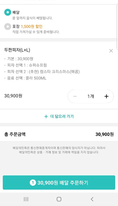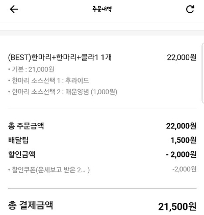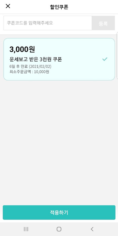 이렇게 주문하실 음식을 장바구니에 담아 계산할 때 할인쿠폰을 눌러 운세보고 받은 할인쿠폰을 적용해보세요!그럼 정말로 주문완료!!