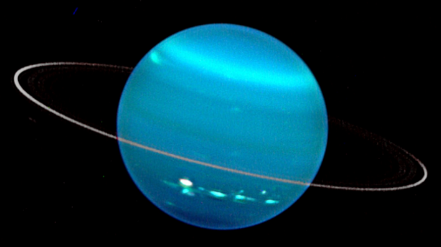 토성 궤도를 넘어서면 청록색 행성 천왕성이 있습니다. 반지 모양이 25,559km 구형을 한 천왕성은 1781년 4월에 천문학자이자 음악가인 윌리엄 허셜이 처음 발견했습니다.