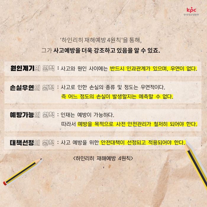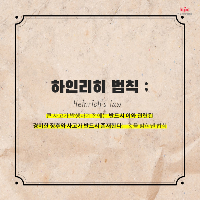 오늘은 하인리히 법칙에 대해서 소개해 드렸는데요. 더 많은 뉴스를 알고 싶으시다면 검색창에 한국생산성본부를 검색하시거나 하단의 한국생산성본부 Facebook을 클릭하세요! ?이번에도 재미있고 알찬 이야기로 돌아오겠습니다:)
