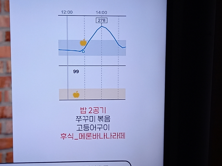 닥터 스누지 – 서울대학교병원 강남센터 이인희 임상영양사가 설명한 내용입니다위에 그림을 보면 후식으로 과일음료를 먹은 것도 아니고 밥도 한 그릇만 먹었는데 혈당치가 많이 오른 것을 알 수 있네요.