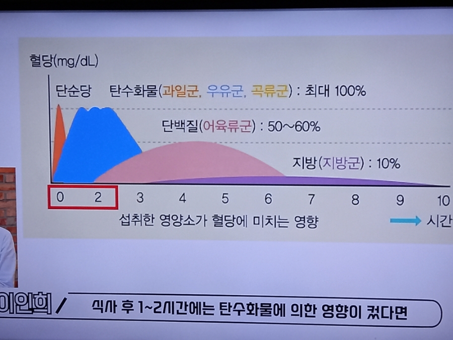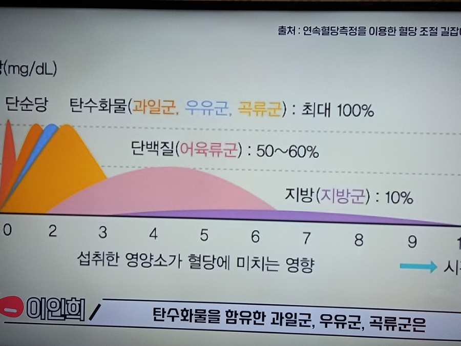 닥터 스누지 – 서울대학교병원 강남센터 이인희 임상영양사가 설명한 내용입니다과일군. 우유군. 곡류군과 같은 탄수화물을 포함한 음식은 혈당을 높이는데 최대 100%까지 기여합니다. (과일은 탄수화물입니다.) 탄수화물은 밑에 사진처럼