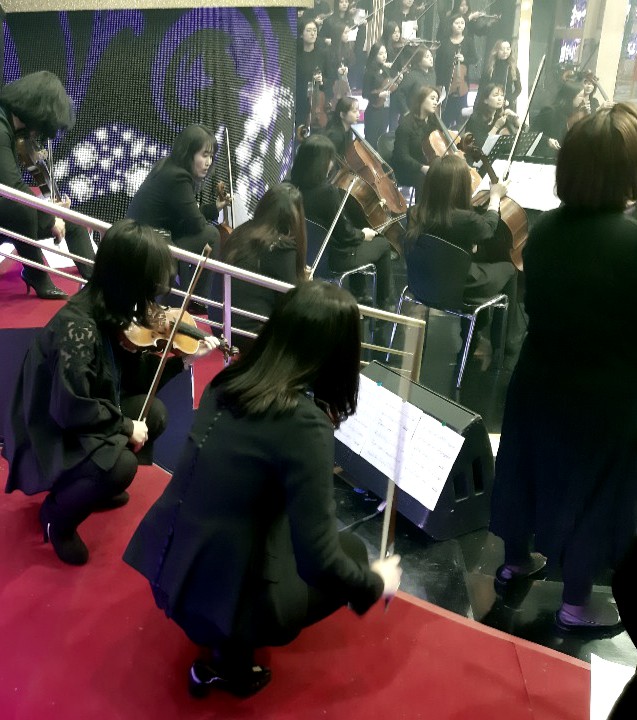 무대 촬영 전에 연습도 하고 악보 세팅도 하고 그날 받은 악보라서 머리에 새기고 손가락에 채운다.수많은 음표를…