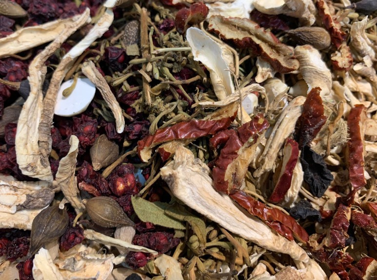 납다리, 금은화, 우방자, 박하민트, 길경, 대나무잎, 형뚜껑, 콩황권, 감초는 염증치료에 효과가 있는 약제입니다.