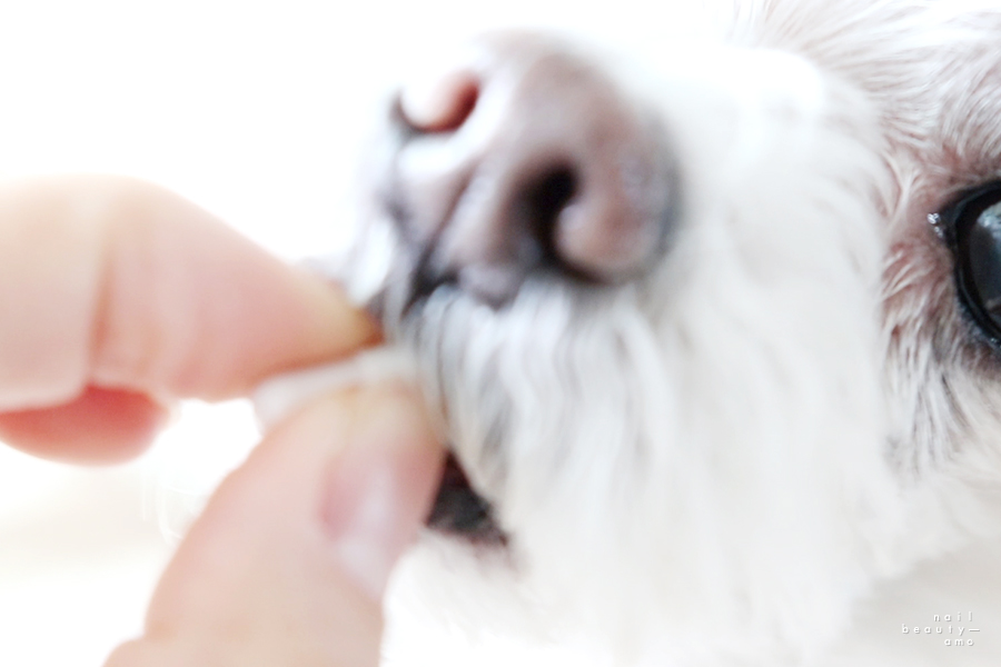 제 엄지손톱만한 노령견 영양제입니다3 개월 이상부터 줄 수 있는 영양제이므로 3 개월 이상의 개도 사용할 수 있도록 작은 크기입니다.