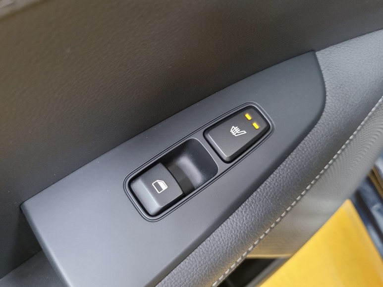 핸들 좌측에 음성인식 기능을 포함하여 블루투스 설정 및 변경이 가능한 버튼이, 핸들 우측에 크루즈 컨트롤 기능 설정 및 변경이 가능한 버튼이 배치되어 있습니다.위 차량은 차선이탈경고장치, 후방방향경고장치 옵션이 주차되어 있어 반자율주행이 가능한 차량입니다.^^ 뒷좌석 열선시트까지 모두 포함된 차량입니다.