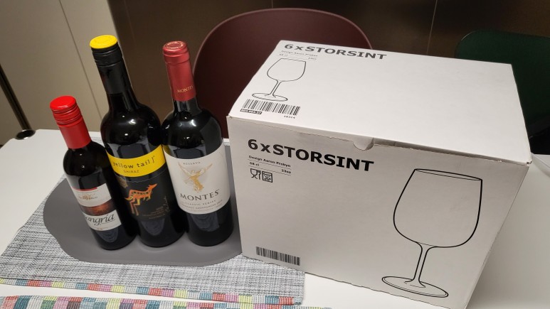 그래서 경기도 재해지원금을 이용해서 편의점에서 와인을 사보니까 아직 와인을 몰라서 이름 묻는 걸 사왔는데 이케아 와인잔도 도착해서 열심히 세척해 놓을 와인잔도 고민했는데 물론 비싼 와인잔이 좋긴 하지만 아직 그 정도는 모르니까 시작은 이케아로!