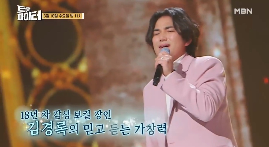 무엇보다 김경록은 트로트곡을 직접 만들기까지의 이력으로 모두를 놀라게 했다. 김창열은 “김경록이 ‘DJ DOC’의 트로트곡 ‘형 그런 사람 아니야’를 작사, 작곡했다”고 밝혔다. 가요계의 숨은 트로트 실력자 김경록의 무대는 어떨지 실전을 향한 궁금증이 증폭된다.