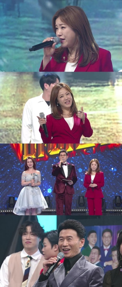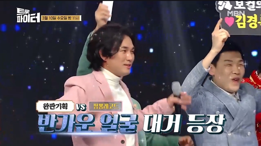 이런 가운데 ‘매진 기획’에서는 실력파 보컬 그룹 V.O.S. 김경록을 초청해 눈길을 끌었다. 김경록은 발라드에서 트로트 모드로 순식간에 전환해 첫 소절에서 상대팀을 압도하며 기선을 제압했다.