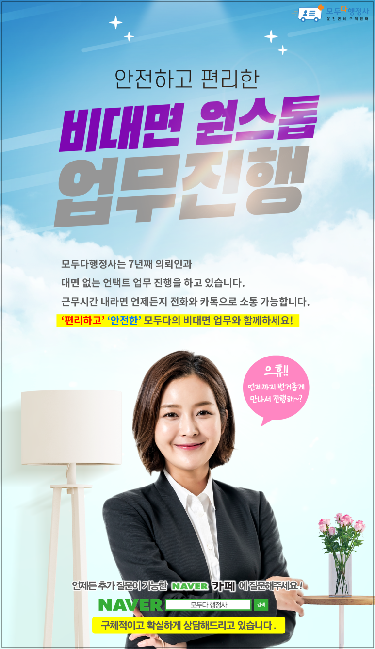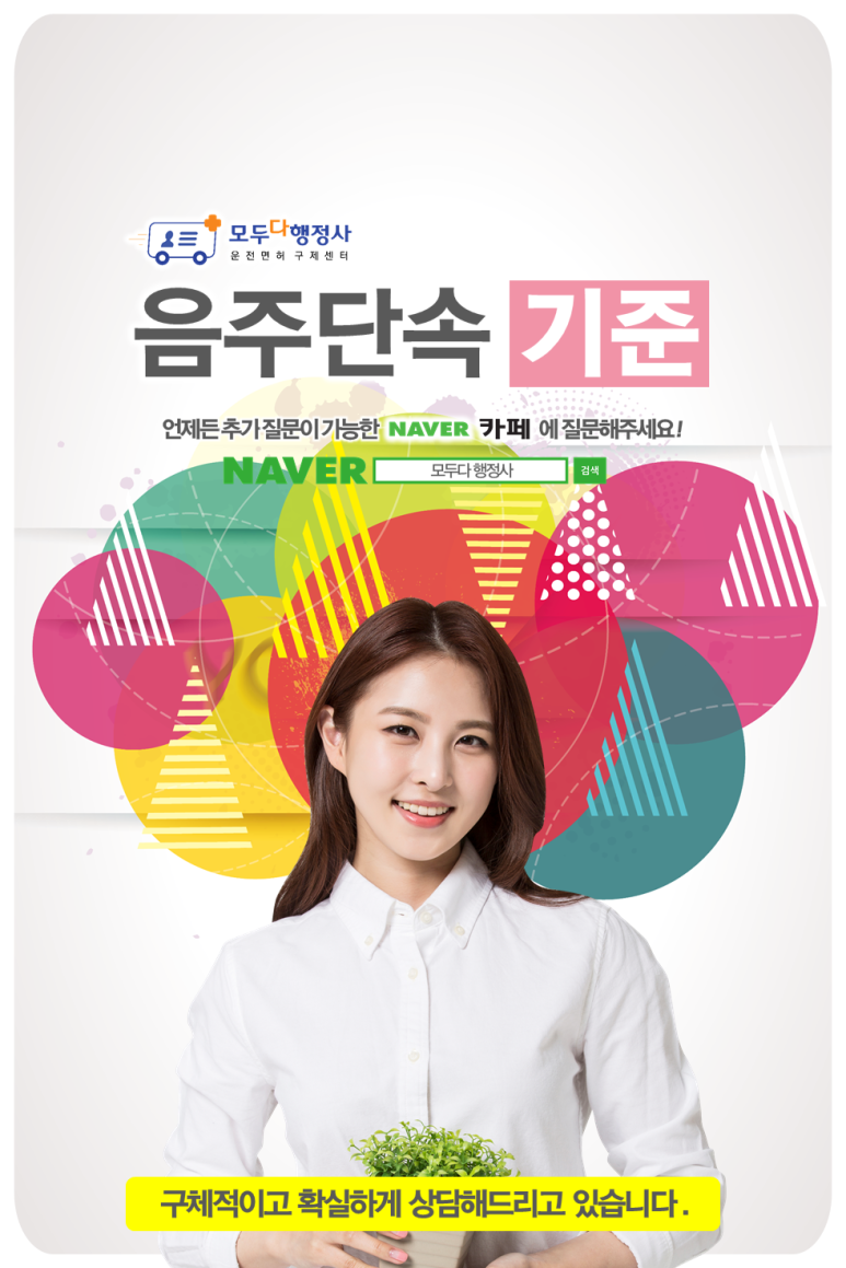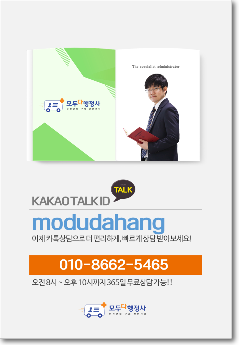 오랜 경험과 데이터를 바탕으로 작성한 ‘확실한 전략지침’ 검증된 운전면허구제행정사 모두가 행정사대표 ‘손범석 행정사’ 홈페이지:https://www.moduda-lofe.com 카페://cafe.naver.com/youngname2011vo.la