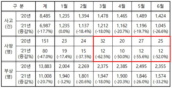 전년 대비 월별 음주사고 현황(6월말 기준/2021년 잠정통계) 양우철 경찰청 교통안전과장은 이번 집중 단속과 관련, “비접촉 음주감지기 사용 등 코로나19 감염 예방에 유의하면서 음주운전 단속을 펼칠 방침”이라고 설명했다.