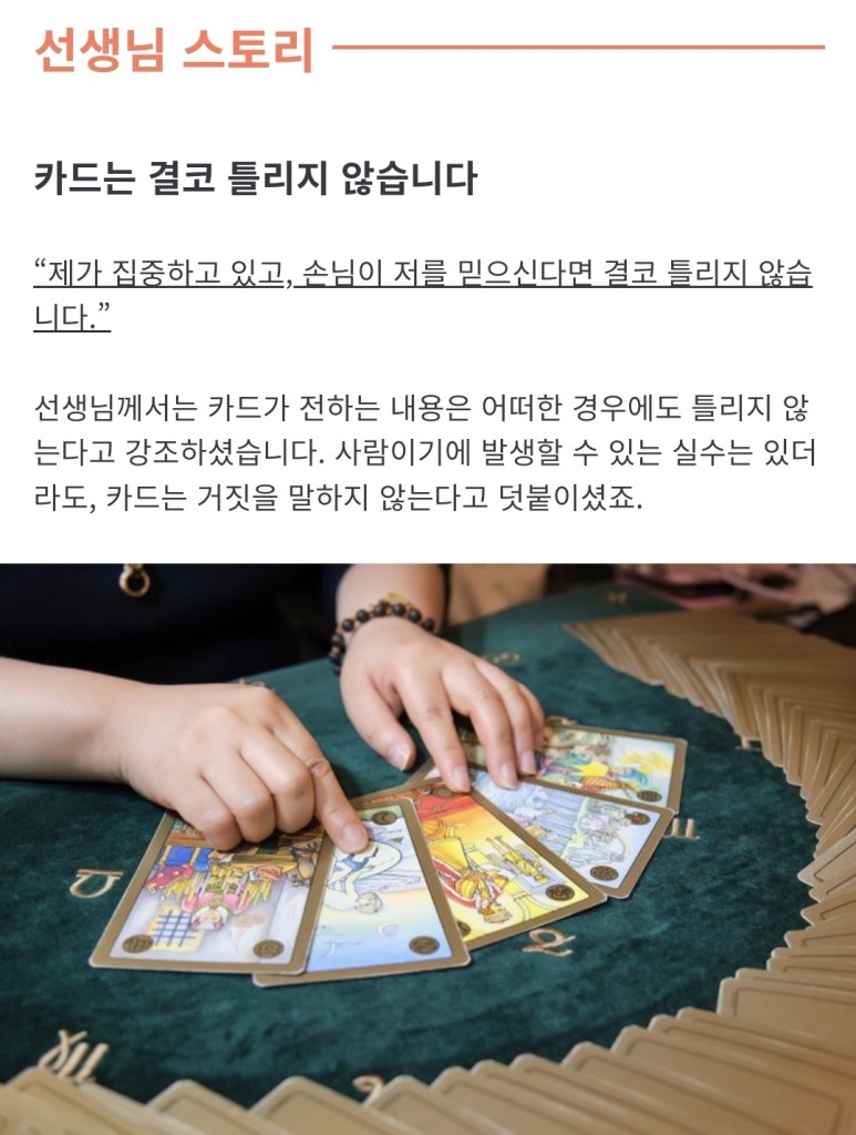 타로 카드는 내가 직접 뽑아야 되는 거 아니야?전화로 신점 타로를 본다고?타로카드는 자신의 손으로 직접 뽑아야 의미가 있다고 생각했다. 혼자만의 생각이었던 내 손으로 카드를 고르지 않아도 타로의 정확성에 영향을 미치지 않는다.