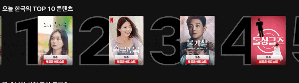 대부분 한국 콘텐츠인데 6위와 8위만 서구권 콘텐츠다.