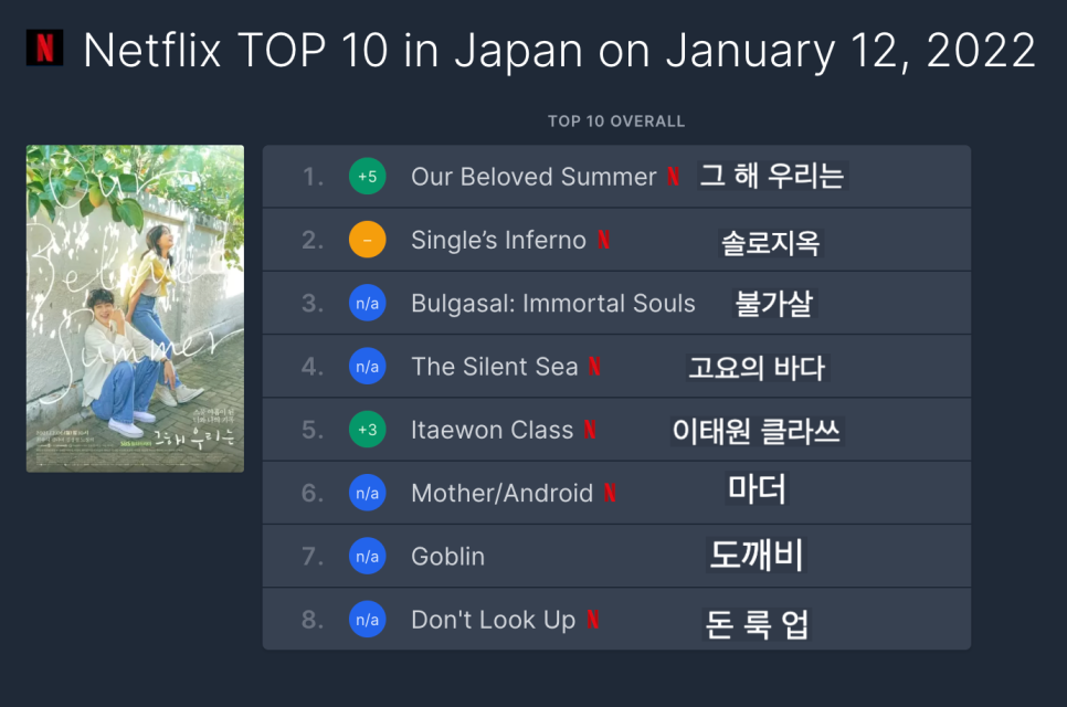 원래 한국드라마를 좋아하는건 알고있었지만, 생각보다 훨씬 좋아했기 때문에 어느정도일까해서 일본 넷플릭스 순위를 찾아봤더니 한국 넷플릭스 순위와 콘트롤C+V 레벨에서 똑같아서 깜짝놀랐어 ㅋㅋㅋㅋㅋㅋㅋㅋㅋㅋㅋㅋ