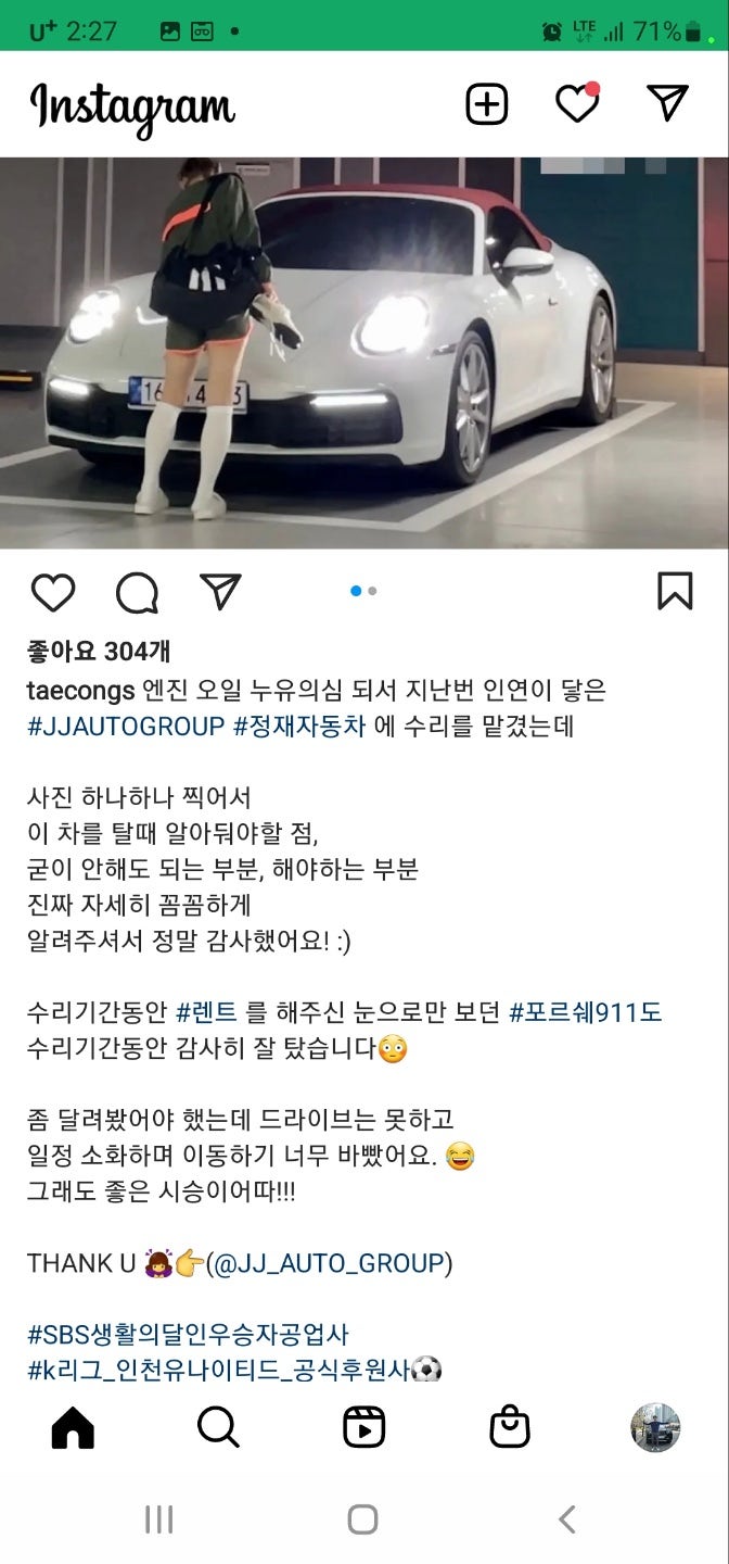 그러던 중 열심히 일하는 미모까지!! #포르쉐 911 #렌트카 서비스 받을 수 있는 곳!