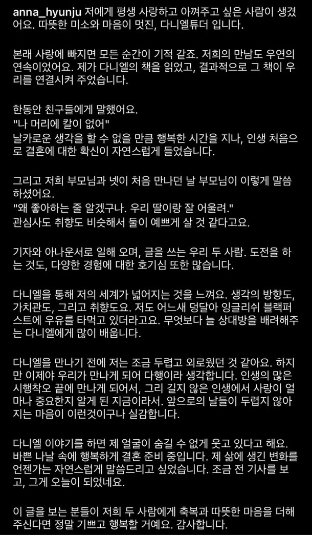임현주 아나운서가 결혼한다는 소식… 축하드립니다.