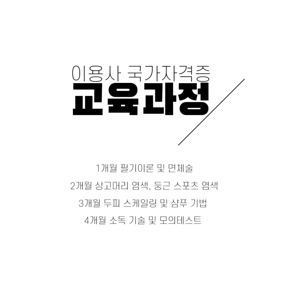 그래서 저도 오랫동안 헤어디자이너라는 꿈을 포기할 수 없었기 때문에 그 어느 곳보다 체계적으로 배울 수 있고 전문적으로 배울 수 있는 강남 이용학원을 찾게 되었습니다. 이왕이면 전문적으로 배울 수 있고, 이발사 자격증을 한번에 합격할 수 있는 것부터 시작하는 것이 시간, 돈, 체력적으로 낭비 없는 효율적인 방법이니까!