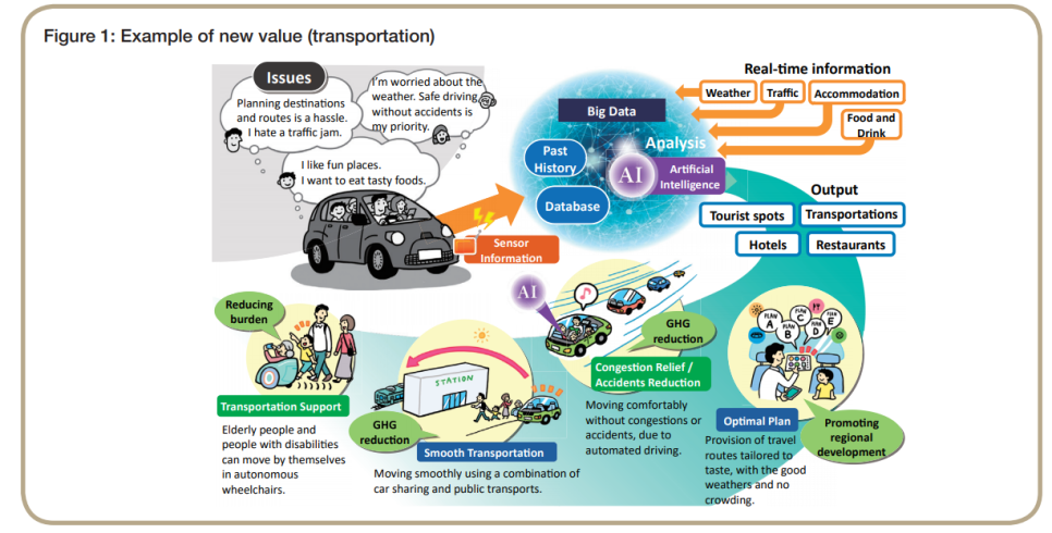 위 그림은 향후 자율주행 자동차를 향할 때 단순히 차가 자율주행하는 것 이상으로 많은 역할을 할 것임을 나타내고 있다. 과거 휴대전화에서 스마트폰으로 진화하듯이 차량이 통신, Big Data, AI와 결합돼 일상에 필요한 정보와 차량 사용자에게 유용한 각종 정보를 제공할 수 있게 된다.