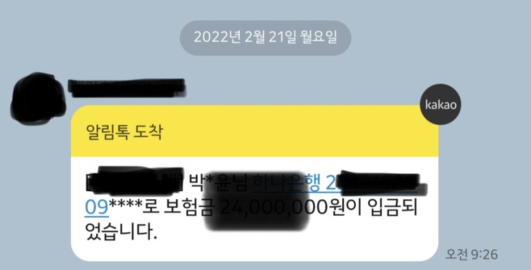 보험금 수령자의 문자 두둥!