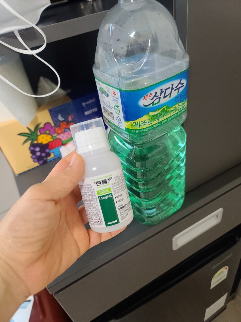 어쩔 수 없는… 좀 참아야겠다어떡해. 녹색 탄튬 가글액을 물 1L로 희석하여 수술 전 양치질을 시킨다.