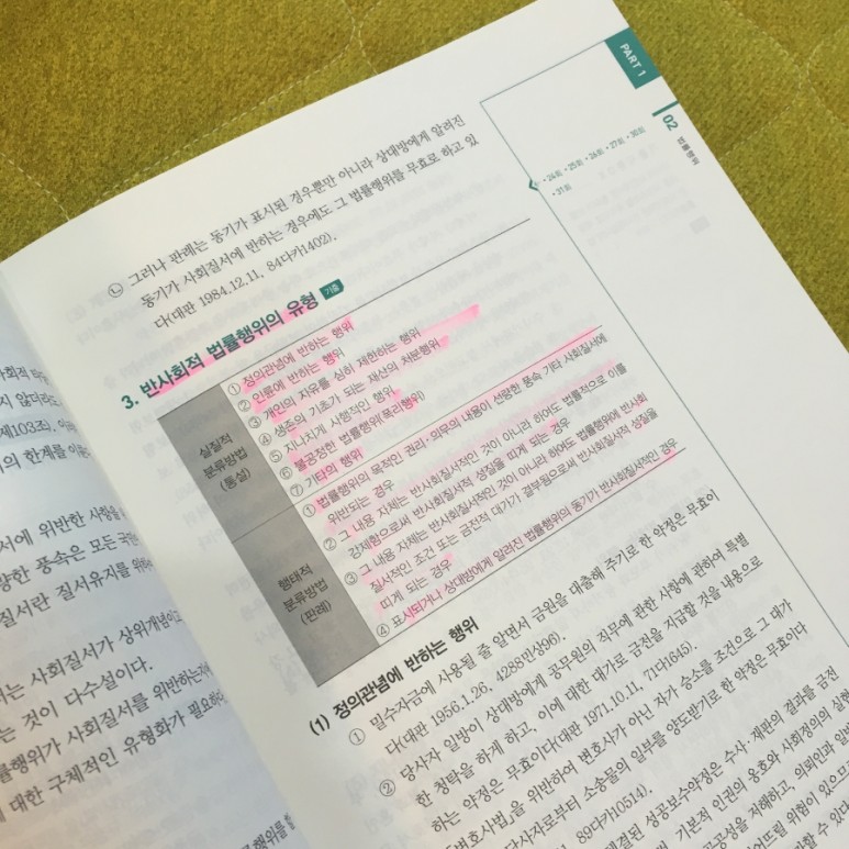 그 외의 과목은 아무래도 법과 관련된 키워드가 많기 때문에 각 조항별 법률 내용이나 기준에 초점을 맞춰서 1차로 분류해서 정리하는 것도 의외로 도움이 되거든요. 다음은 다양한 판례와 지문을 통해 다양한 판결론에 익숙해지도록 접근했습니다.