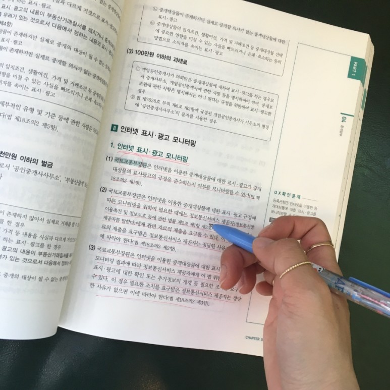 중개사 법령의 경우는 이름처럼 실무와의 연관성이 가장 높은 과목이기 때문에 기본 이론의 중요도가 더 큰 편이라고 할 수 있습니다. 중개사법 및 중개실무이론을 공부한 후 OX문제나 공란 추론 등을 반복적으로 어지럽혀졌던 퍼즐을 하나, 둘 맞춰나갈 수 있었습니다.