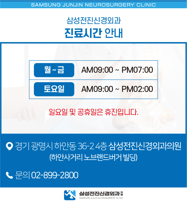저희 광명일자수증후군 치료 삼성진 신경외과는 원인까지 분석한 정확도 높은 진료계획 수립을 통해 각각의 개별 증상을 고려한 체계적인 치료를 시행하고 있습니다.