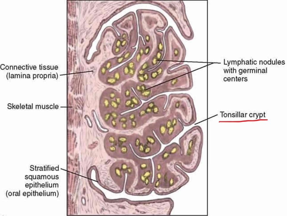 편도결석의 원인=편도를 잘라 현미경으로 보면 아래 그림과 같은 봉오리 모양을 하고 있으며 양 측면이나 중앙에 편도라는 계곡과 같은 틈이 있다