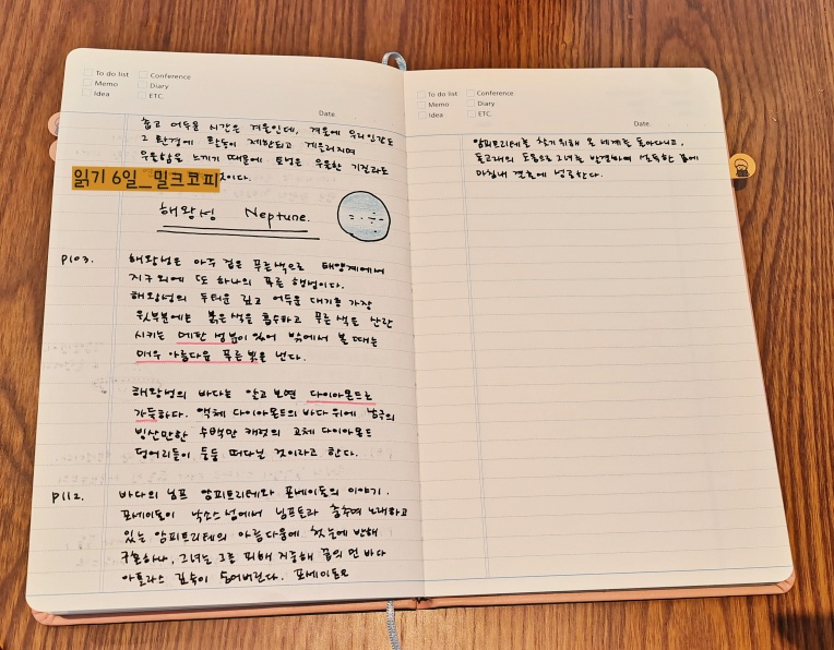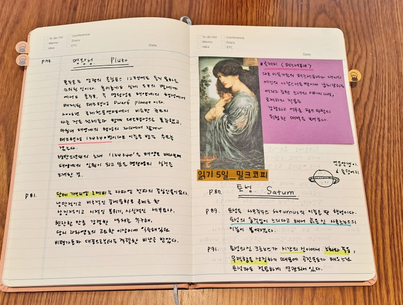 읽기 시작! 공부독서 1일_태양계의 왕자, 목성(주피터) 공부독서 2일_화려한 행성, 금성(비너스) 공부독서 3일_찢어진 비너스 <로 곰팡이 비너스> 공부독서 4일_BTS의 노래가 됐다 명왕성(플루트) 공부독서 5일_어둡고 음산한 기운, 토성공부 비너스 (새턴) 공부독서 6일_깨진 명성(새턴) 공부독서 6일)