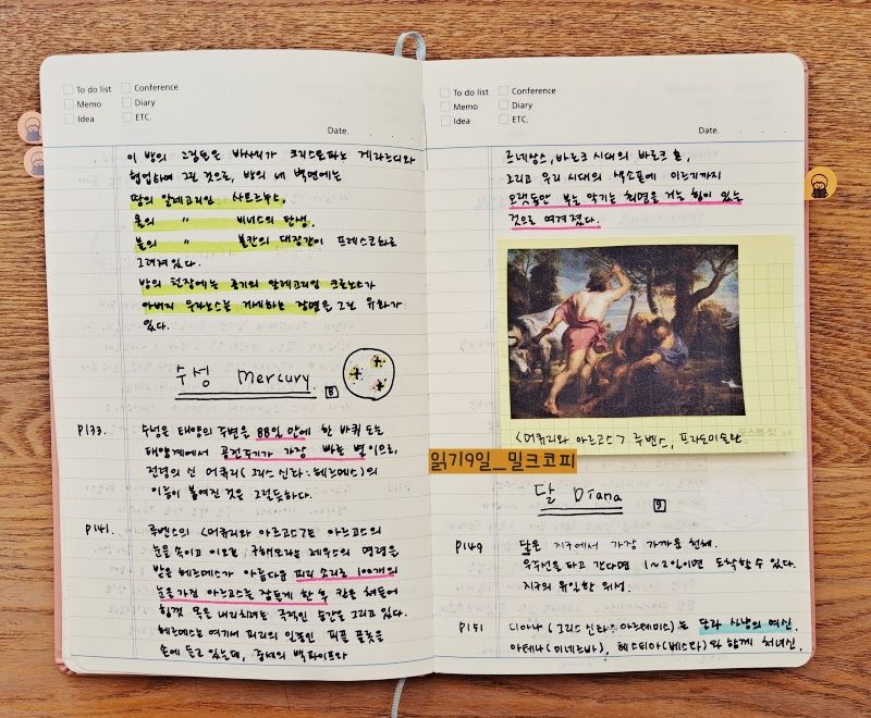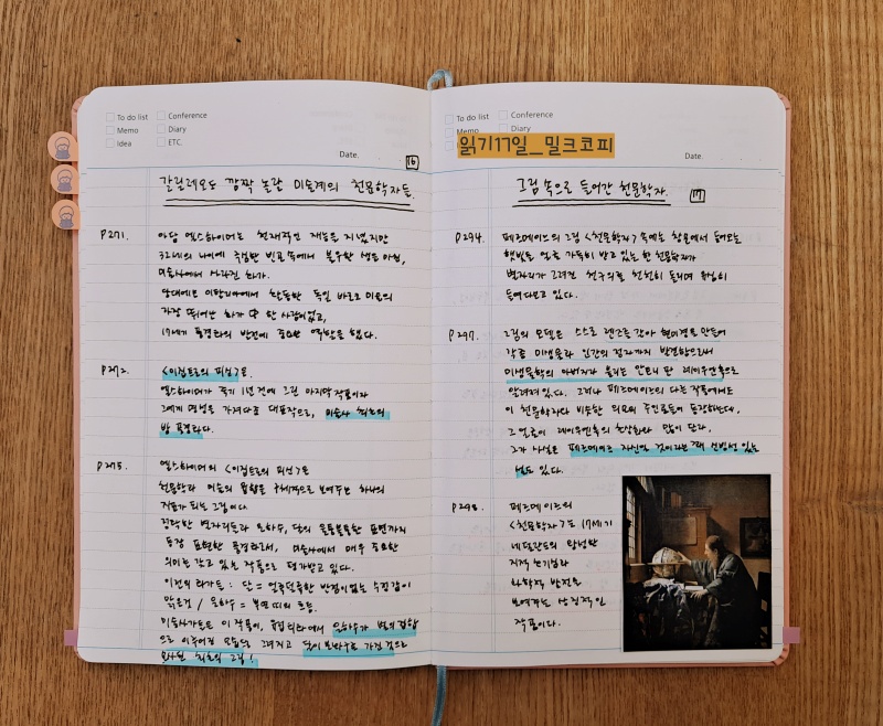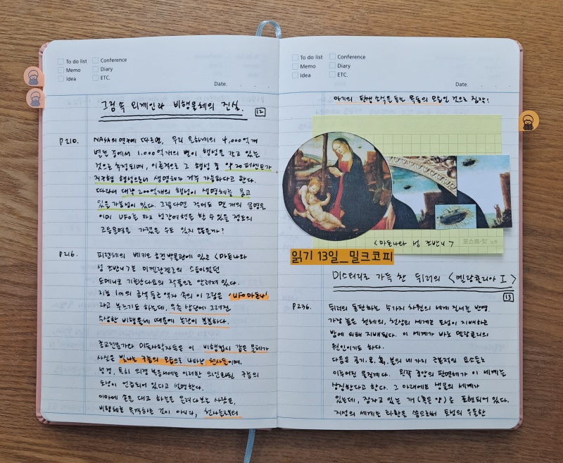 계속 독서중! 공부 독서 11일_태양계의 중심, 태양(아폴로) 공부 독서 12일_그림속에 UFO가 있다.공부독서 13일_미스터리로 가득한 뒤로의 그림공부 독서 14일_세상에서 가장 아름다운 책공부 독서 15일_혜성을 잡은 중세 화가, 조토공부 독서 16일_갈릴레오도 놀라는 미술계 천문학자들의 공부 독서 17일_페르메이르, 천문학자를 그림 속에 공부 독서 18일_고흐, 밤하늘을 사랑했다 오키조 독서 19일_호안.