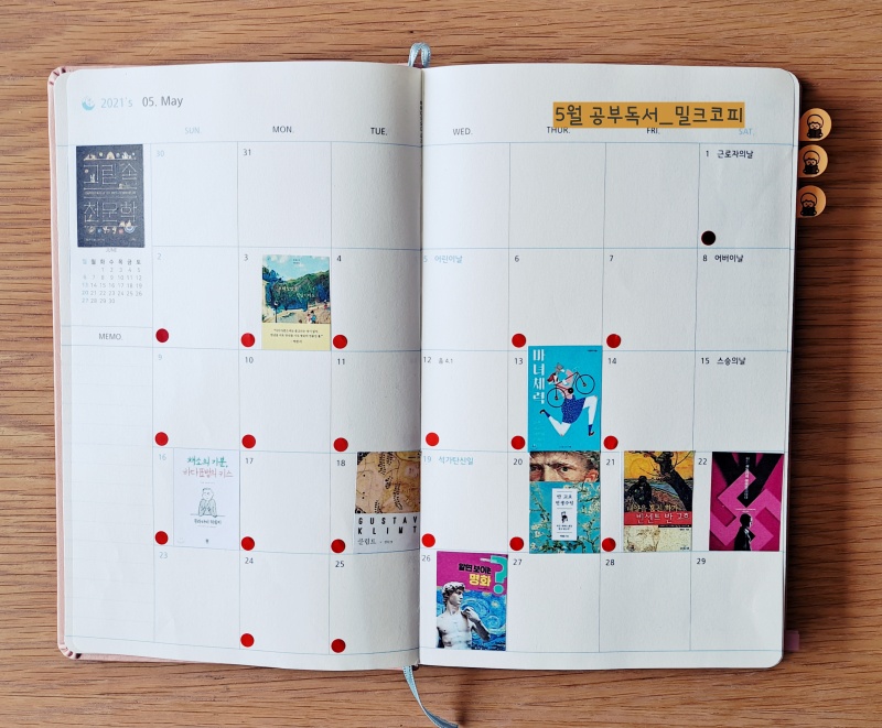 5월 한 달 독서 다이어리에 붙은 책표지 옆에 존재감 넘치는 빨간 스티커! 그 아이들이 20일 공부 독서 스탬프다.5월까지 정리와 포스팅을 끝내기 때문에 마지막에 식은땀을 흘리지만 다이어리를 넘길 때는 아주 기분이 좋다.6월에도 화이팅!