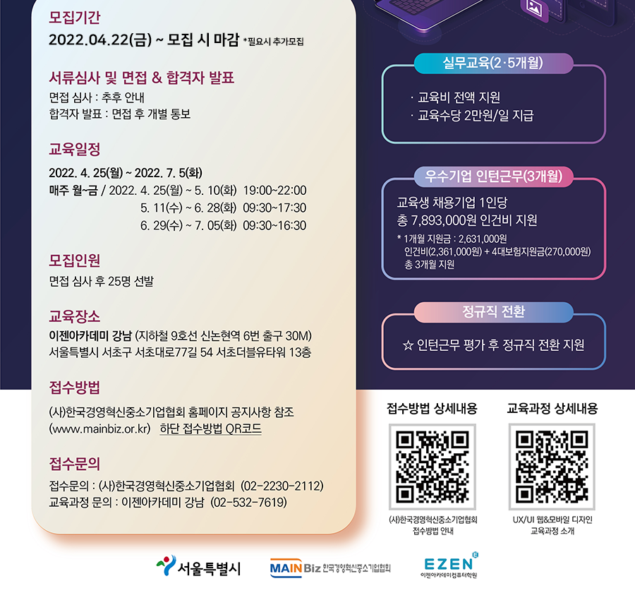 현재 100% 국비 무료로 참여 가능합니다.단 22명 정원 선착순입니다.