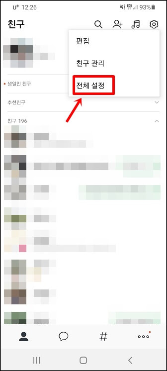 대화창에서 오른쪽 상단 톱니바퀴 선택