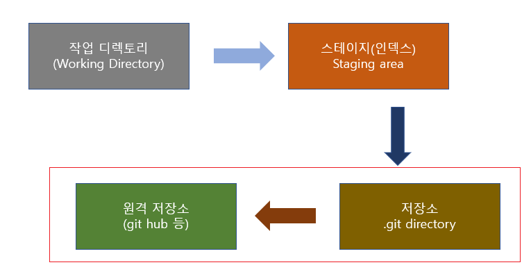 1. Untarcked: 처음 만들었을 때 어떤 곳이라고 생각하면 편하다.(ad)를 하다.2. Staged : unracked 상태에서 ad를 하면 만든 파일이 있는 상태이나 커밋된 상태는 아니다. 쉽게 말해 준비기라고 생각하면 편할 것 같다.(commit)를 한다.3. Unmodifed: 커밋하면 이미 완전 커밋 즉 완료된 상태다.(edit)을 하다.4. Modifed: 이것은 내가 내용을 수정하고 싶을 때 사용하는 것인데, 그러면 modifed 상태가 된다. 그리고 여기서 다시 add를 해서 staged가 되고 거기서 다시 commit을 하면 umodifed가 되는 것이다.5. unmodifed 상태→(push)→Romote 이는 앞서 배운 바와 같이 커밋한 내용을 보관하는 것이다. 즉 원격 저장소에 넣는 것이다.