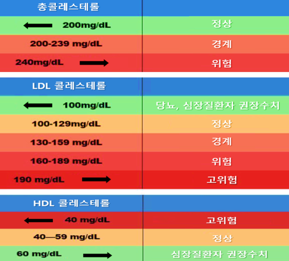 총 콜레스테롤이 200~239mg/dl는 고지혈증 주의,