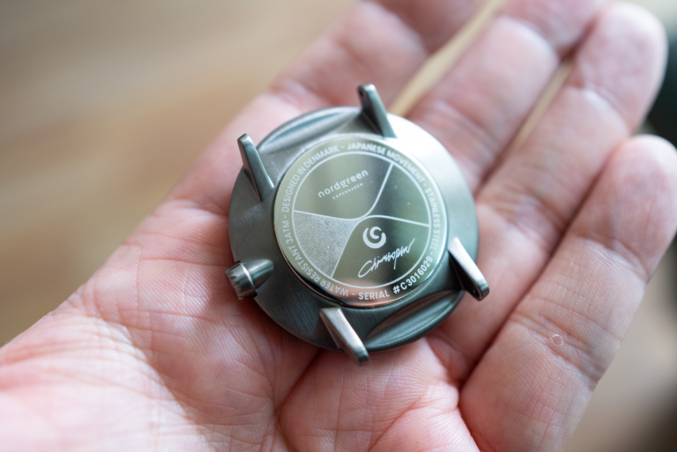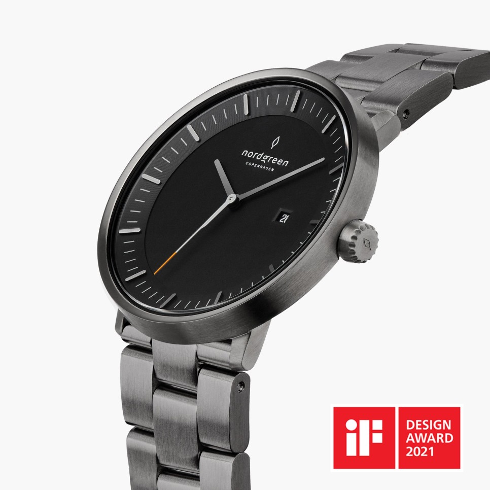 노드그린 수석디자이너 야콥 바그너 2021년 IF 어워드 수상을 한 그의 디자인에 덴마크 출신의 싱어송라이터 크리스토퍼가 선택한 블랙매트 다이얼과 오렌지색 시계바늘 칩으로 맞춤 제작한 한정판 컬렉션입니다.