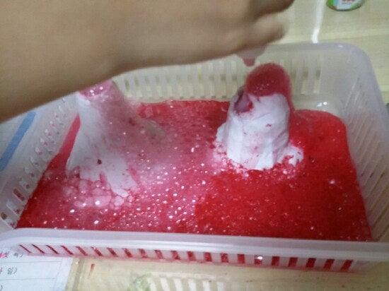 안에 베이킹소다와 붉은 색소를 넣은 후 식초를 부으면 ~~~~~~~~ 바닷속에 있는 화산이 폭발합니다!!!