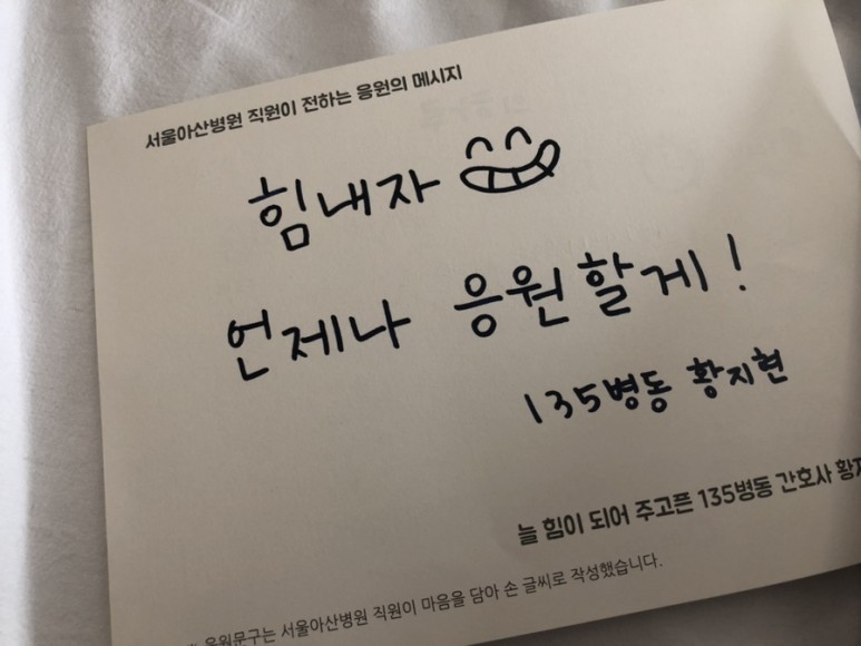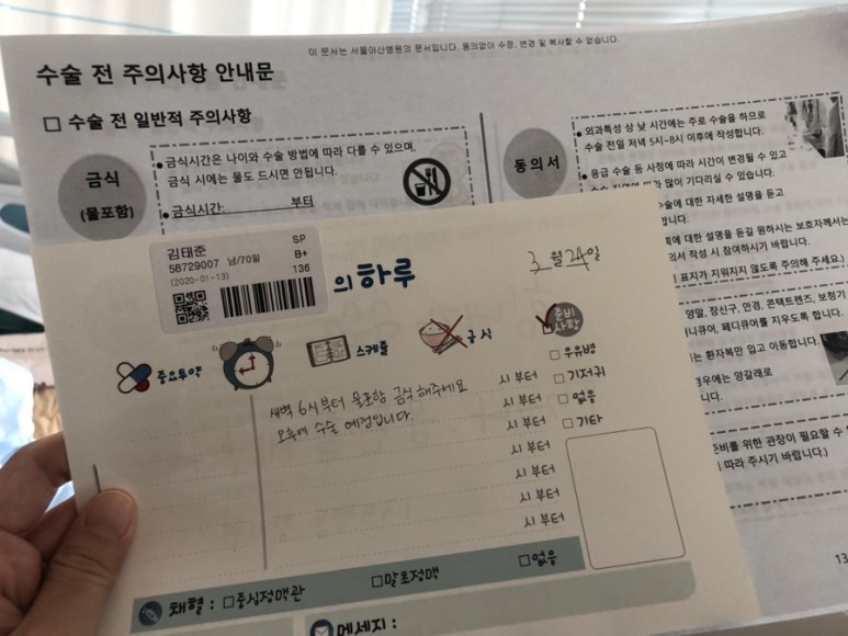 수술 안내문과 응원 메시지