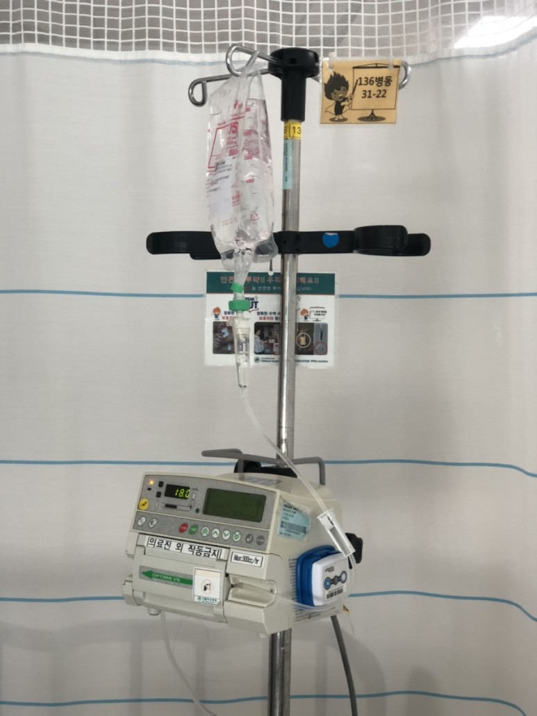 오후 8시부터 시작하기 시작한 수액!! 체중이 적고 수액도 소량씩