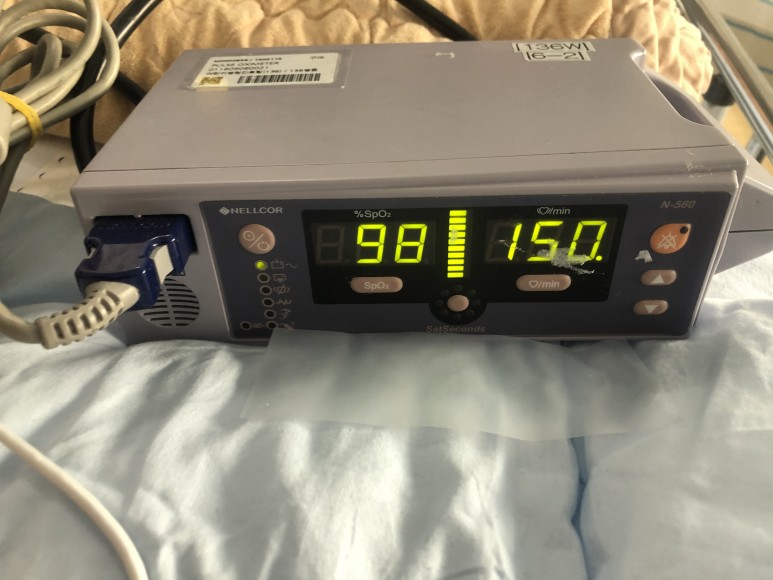계속 울고 있지만 산 맨 포화도가 떨어지고 산소 쓰고 발에는 측정하는 것을 달아 놨습니다만