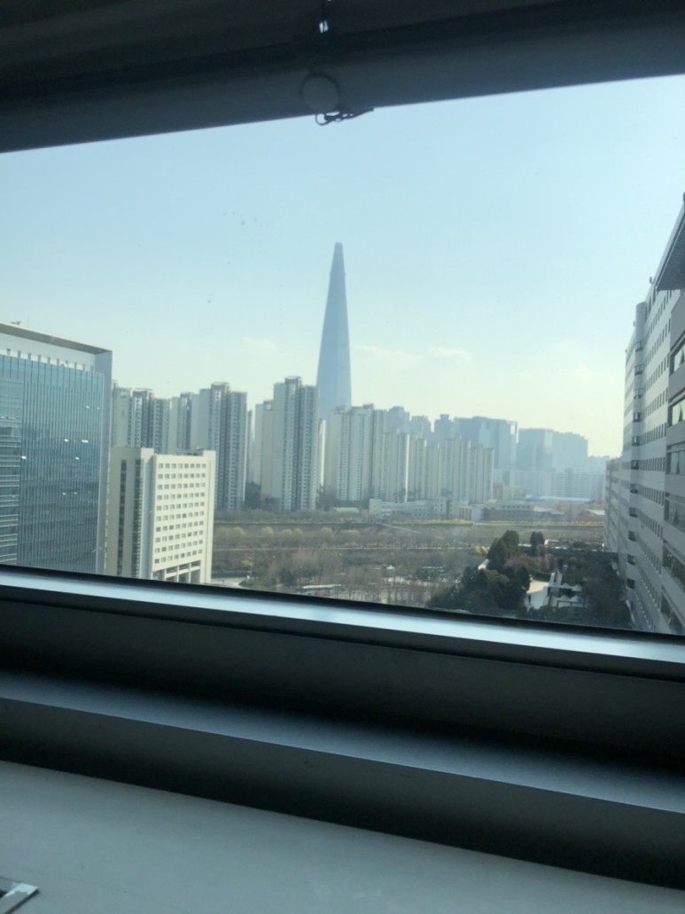 창가 자리라서 뷰가 좋네요 잠실 롯데타워가 보여요