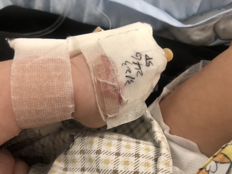 퇴원시간이 돼서 손에 쥔 주사바늘도 뺏습니다