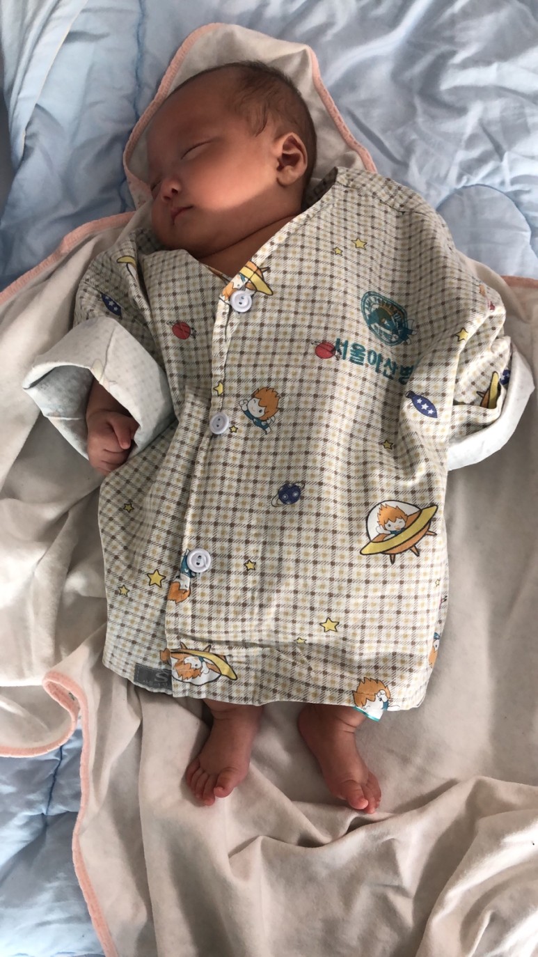 축복도 병원복으로 갈아입었습니다 ~어머, 배낙저고리가 잘 맞네요.