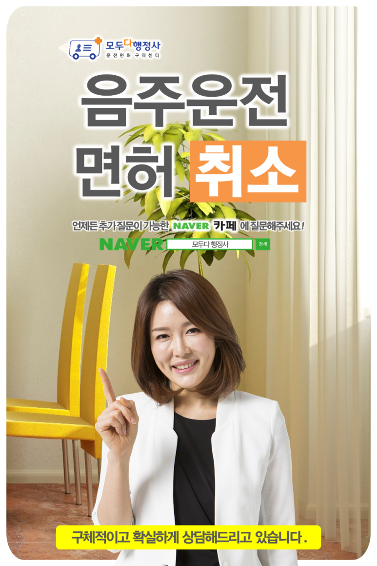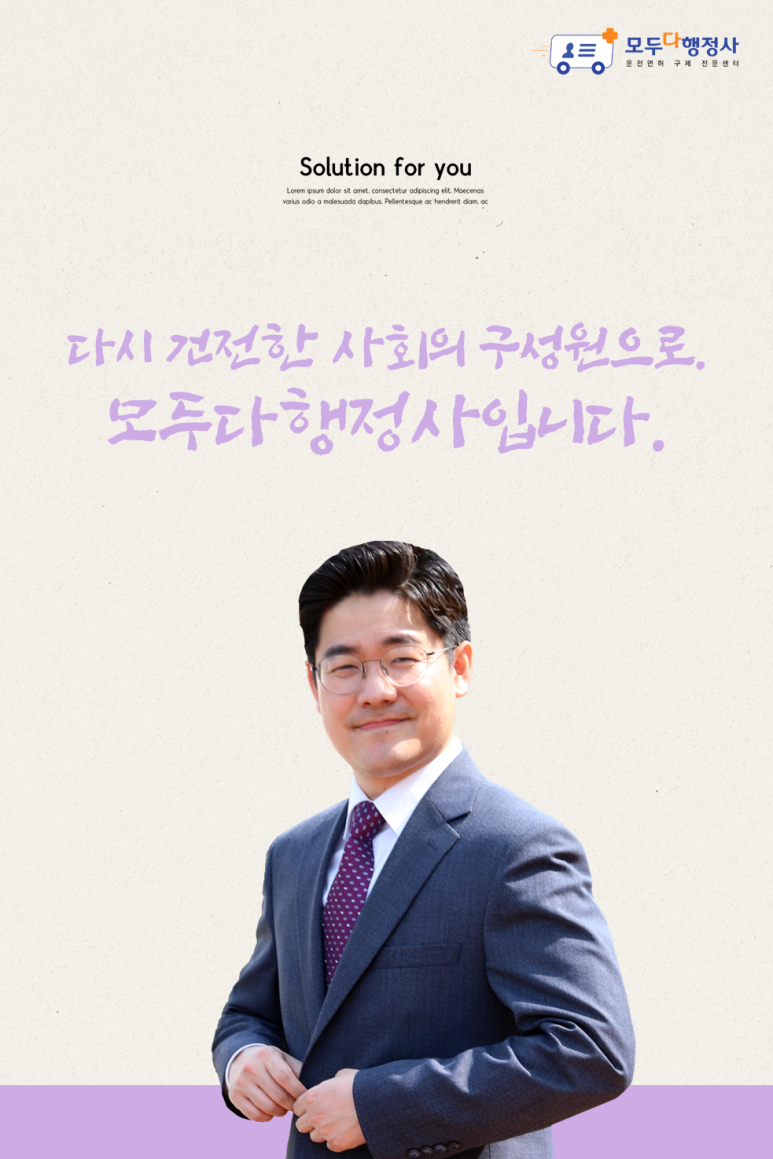 오랜 경험과 데이터를 바탕으로 작성한 ‘확실한 전략지침’ 검증된 운전면허구제행정사 모두가 행정사대표 ‘손범석 행정사’ 홈페이지:https://www.moduda-lofe.com 카페://cafe.naver.com/youngname2011vo.la