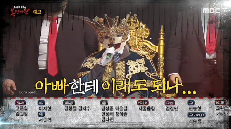 복면가왕의 아버지는 샐러리맨의 정체, 레테아모르, 박현수 추정.